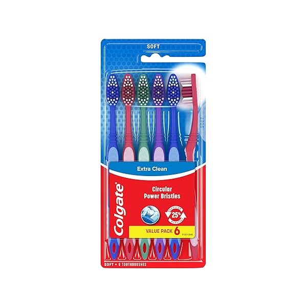 Colgate Extra Clean Soft Toothbrush for Adults – 6 Count (Pack of 1)