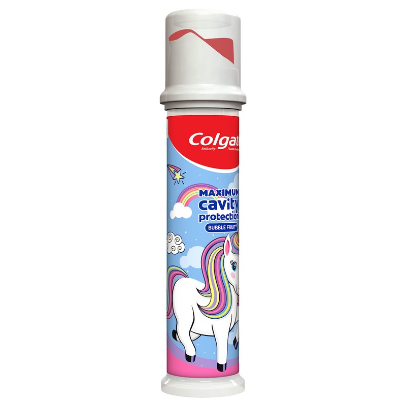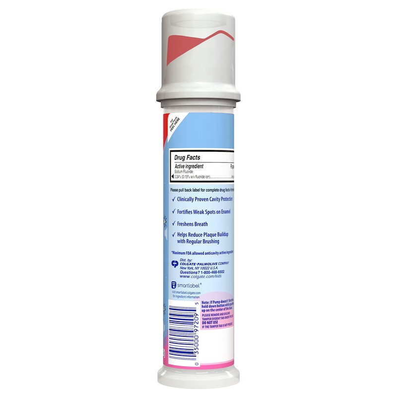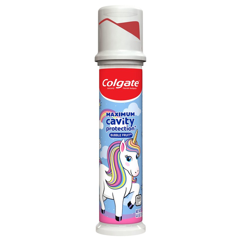 Colgate Kids toothpaste, maximum cavity protection pump is designed for growing adult teeth in kids ages 6 and up. This cavity protection kids toothpaste fortifies weak spots on enamel with regular brushing all the while having a mild bubble fruit flavor to encourage regular brushing.