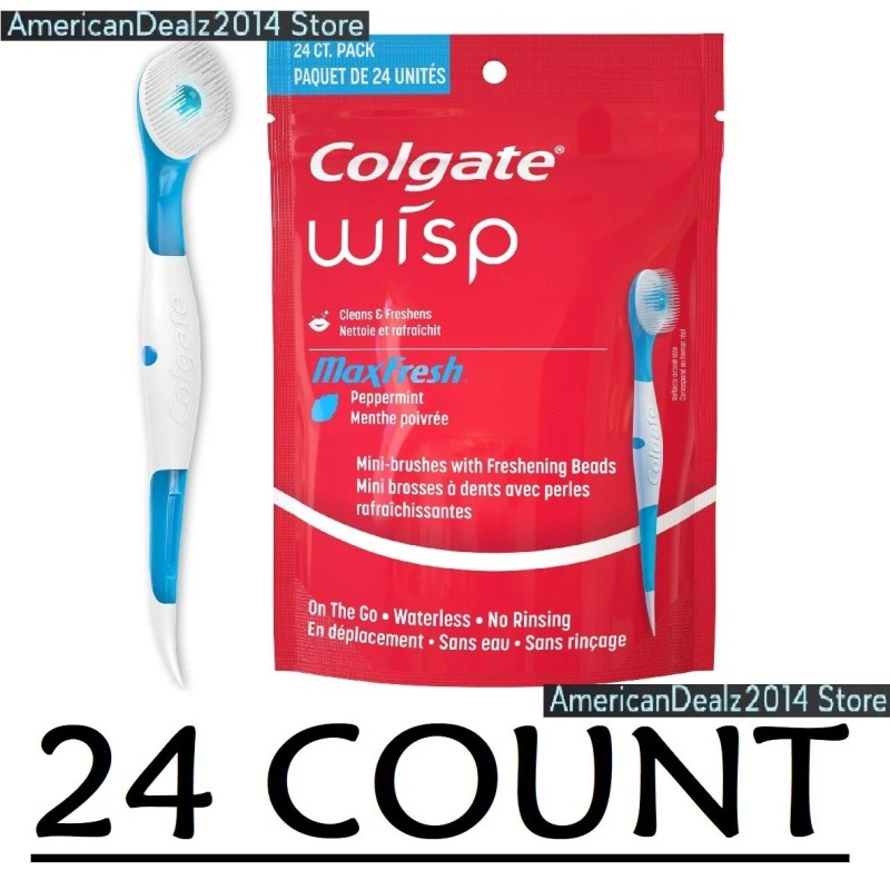 Colgate Wisp Max Fresh Peppermint 24 Count Pack Mini Disposable Travel Brushes