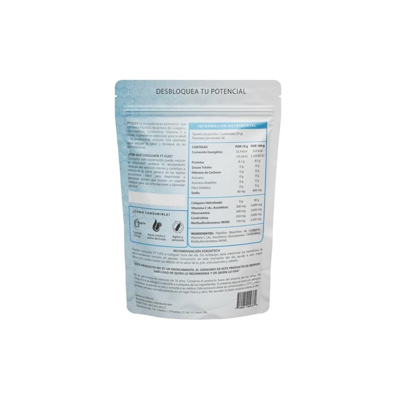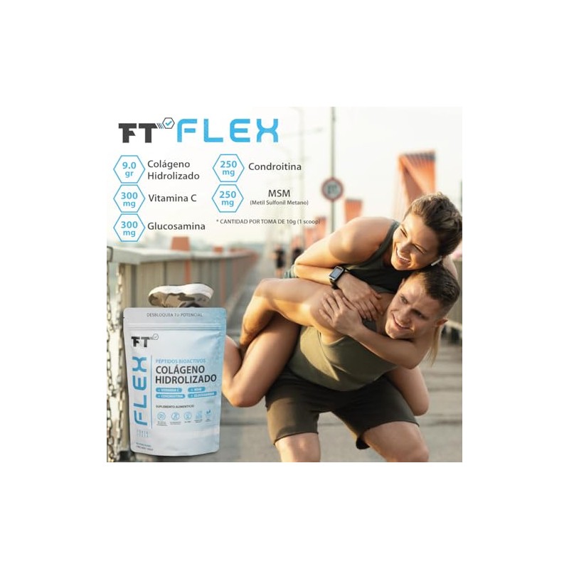 Colágeno Hidrolizado + Vitamina C + Glucosamina + Condroitina + MSM Suplemento Alimenticio FT FLEX Salud Articular
