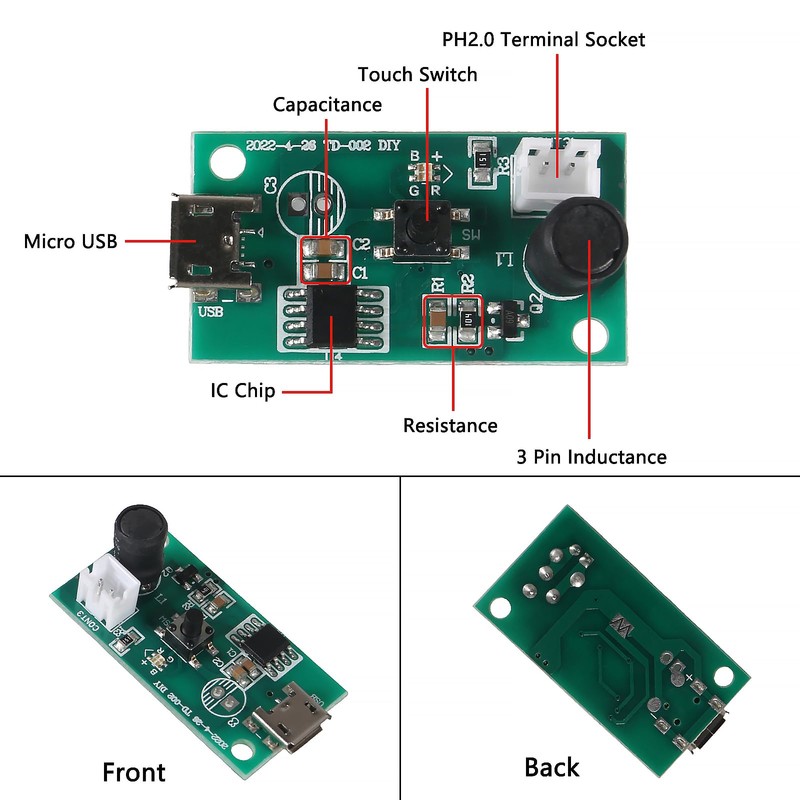 • Application: Ultrasonic mist maker is a humidifier DIY kit, which is widely used in atomization equipment such as USB humidifier, perfume atomizer, aromatherapy atomizer, etc.