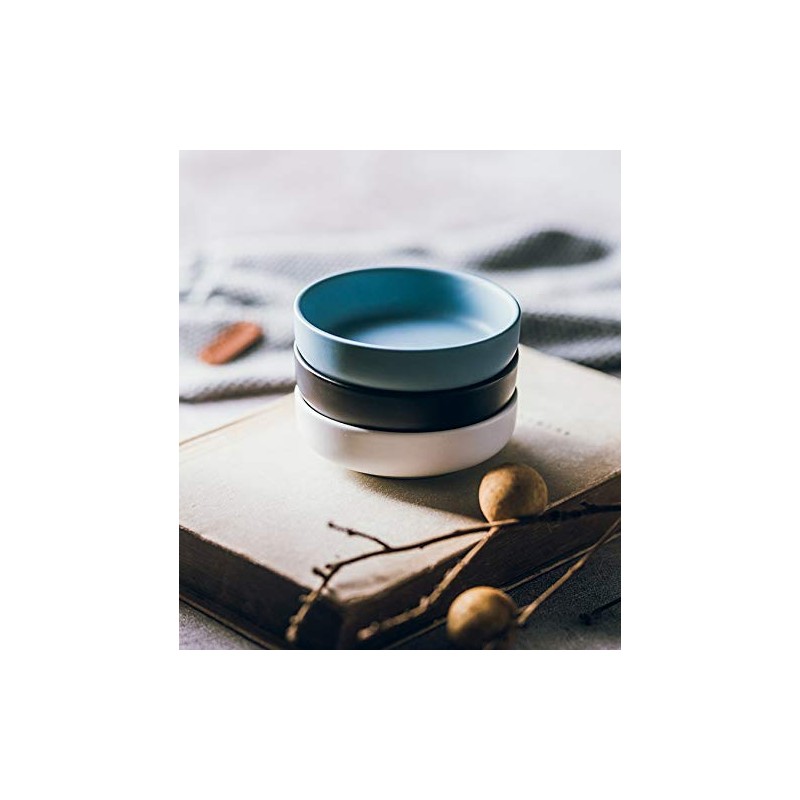 Colias Wing 3.5 Inch Simple Style Single Color Pattern Stylish Design Multipurpose Porcelain Side Dish Bowl Seasoning Dishes Soy Dipping Sauce Dishes-Set of 6-Black/Blue/White