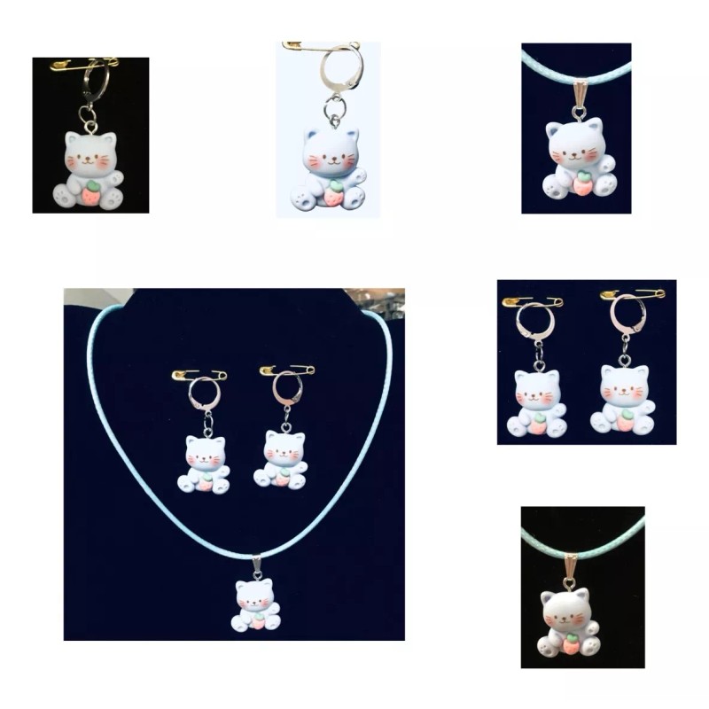 COLIBRI ALEGRE Collar Y Aretes De Gatitos Azules Con Fresa