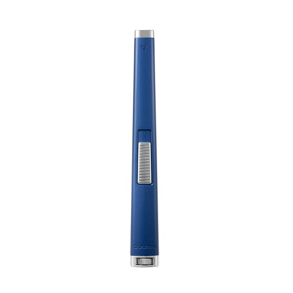Colibri Aura 10mm Flat Flame Lighter - Elegant and Windproof with Refillable Butane, Ideal for Cigars & Candles, with Single-Action Ignition (Matte Blue & Chrome)