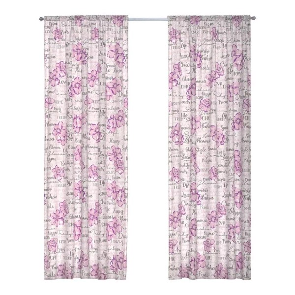 Colibrí Cortinas Lila Chic 2 Paneles De 1.30 X 2.20 Floral Letras