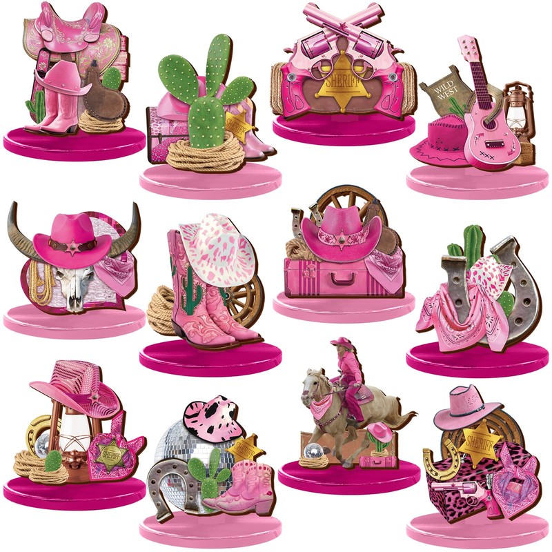- Package Includes: comes with 12 pieces of cowgirl party centerpieces for tables in 12 different styles, convenient to use, just plug the centerpieces into the base, then you will get 12 pieces of complete and distinctive art projects