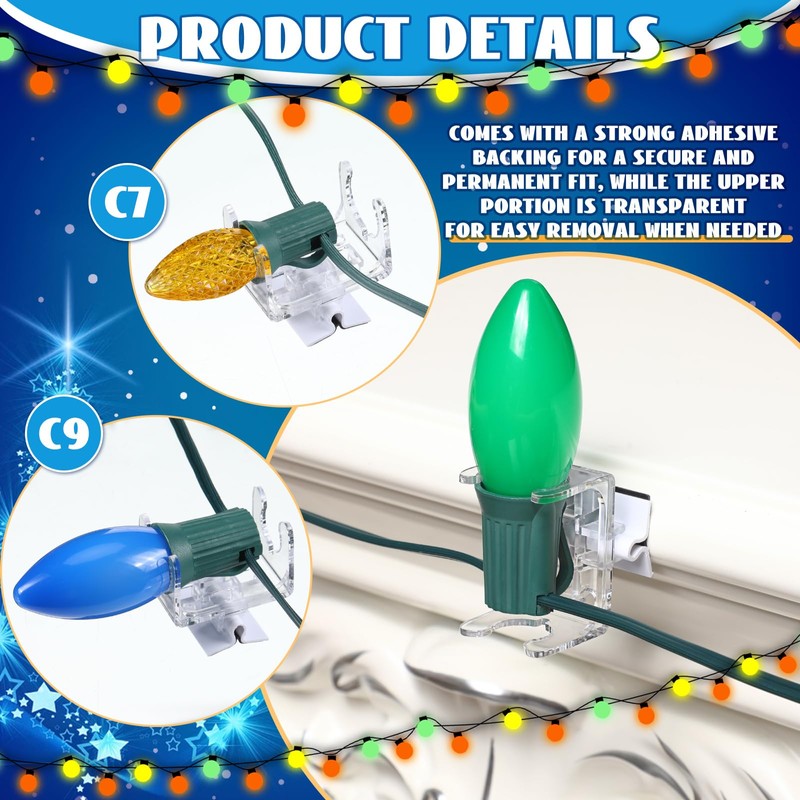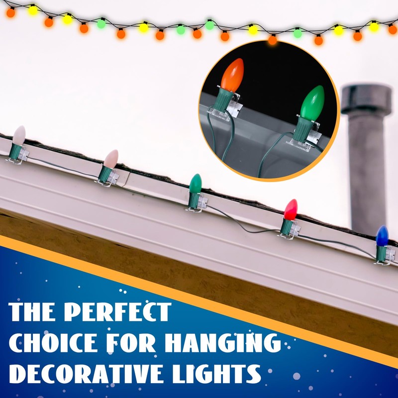 - Festive Occasions: touched with celebratory spirit, our C9/C7 universal light clips are ideal for any festive occasion; From Christmas, Thanksgiving, weddings, anniversaries to New Year's eve, these clips unfailingly attend to your decorating needs