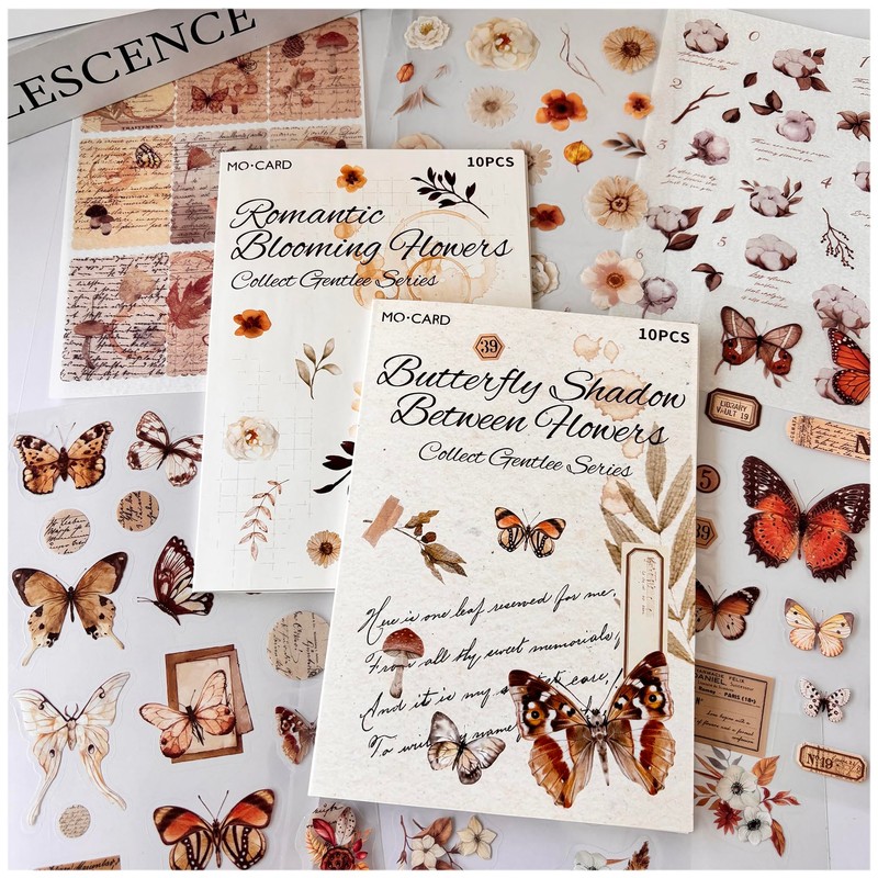 • レトロなイラスト風のシールセットです。淡いトーンの配色で、レトロで繊細な感じがしさせるのが素敵です。二つの異なる材質やデザインの素材を一括にゲットですので、コラージュ初心者の方にも、愛好家の方にもぴったりですね。