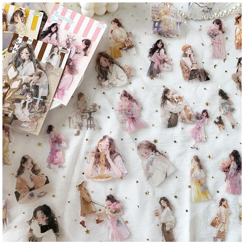 Illustrated girl sticker set. A variety of designs based on the everyday life of a girl. With a large capacity of 120 sheets, a variety of illustrated designs are stylish and you will be wondering which one you will use.