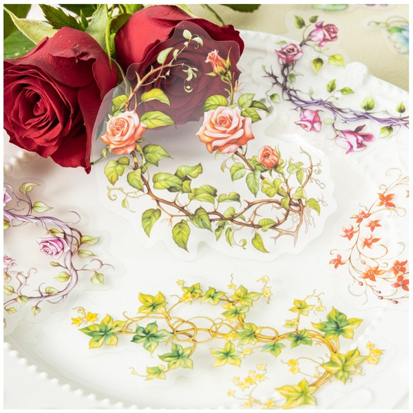 - This is a sticker set with a motif of vine plants and flowers. Designed to give you a fresh feel of the great nature. With a large capacity of 120 sheets, a variety of illustrated designs are stylish and you will be wondering which one you will use
