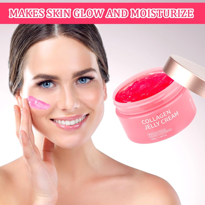 Collagen Jelly Cream, 100 ml Collagen Cream, Moisturising Cream Anti-Ageing Face Care, Strengthens the Skin Barrier, Collagen Cream for Face, Reduces Fine Lines and Dullness