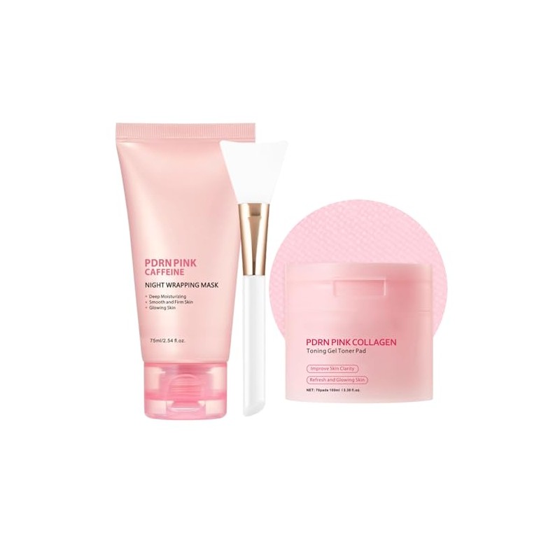 Collagen Night Wrapping Peel-Off Mask & 70 PCS Collagen Toner Pads for Pore Minimizer, Korean Face Mask for Elasticity, Hydrating & Glow, Co llagen Mask for Glass Skin