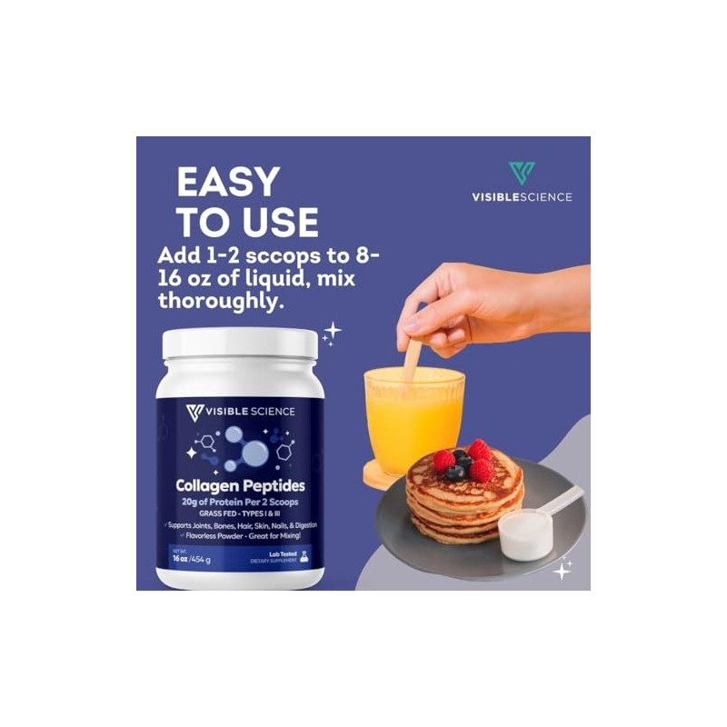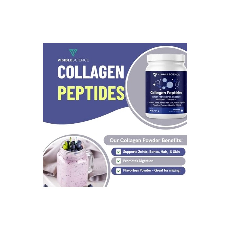 Collagen Peptides Powder, Types I & III, Grass-Fed, 16 oz, 20g Protein Per Serving, Unflavored