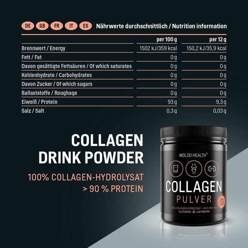 • WoldoHealth 100% collagen bovine-based protein, free from pig collagen.