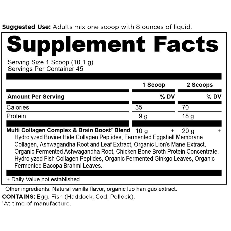 - You will receive (1) one tub of Ancient Nutrition Multi Collagen Protein Brain Boost, 45 servings