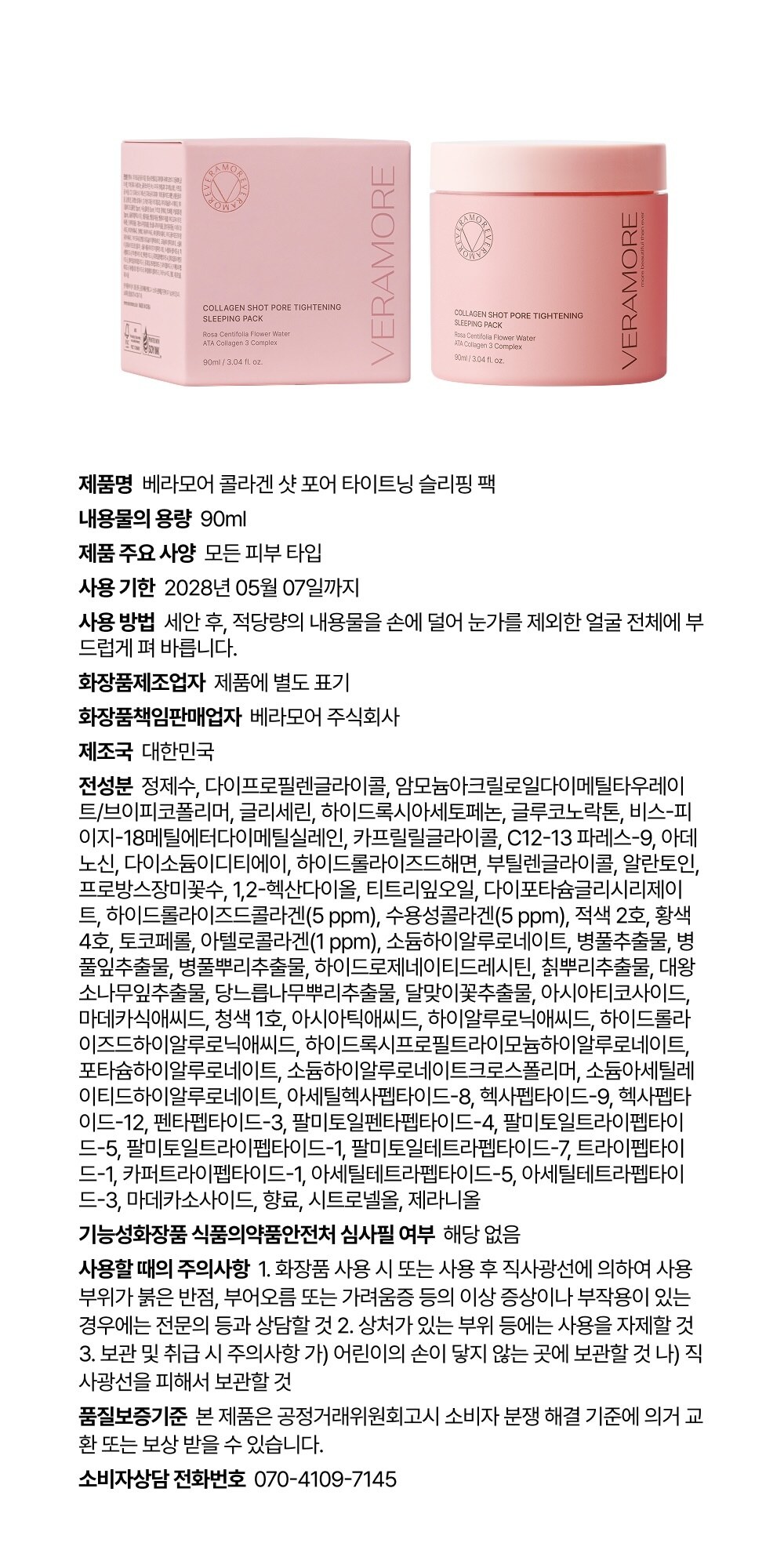 콜라겐샷 포어 타이트닝 슬리핑팩 90ml