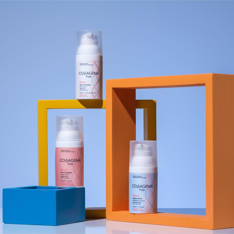 The Collagena Pure The Sculptor Lifting Serum is a highly effective anti-ageing treatment that instantly firms, smooths and revitalises the skin. Its advanced lifting complex GLYCOLIFT works at the molecular level to tighten sagging skin and reduce the appearance of wrinkles. Enriched with guarana extract, it delivers essential minerals and nutrients to hydrate, restore elasticity and prevent premature skin aging. Hydrolysed collagen also improves firmness and skin density for a more youthful and sculpted look. The lightweight, fast-absorbing texture makes it perfect for daily use and leaves your skin visibly firmer and more radiant.