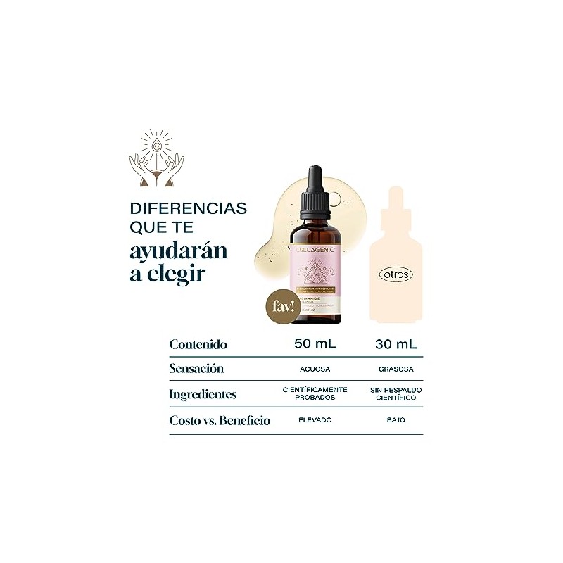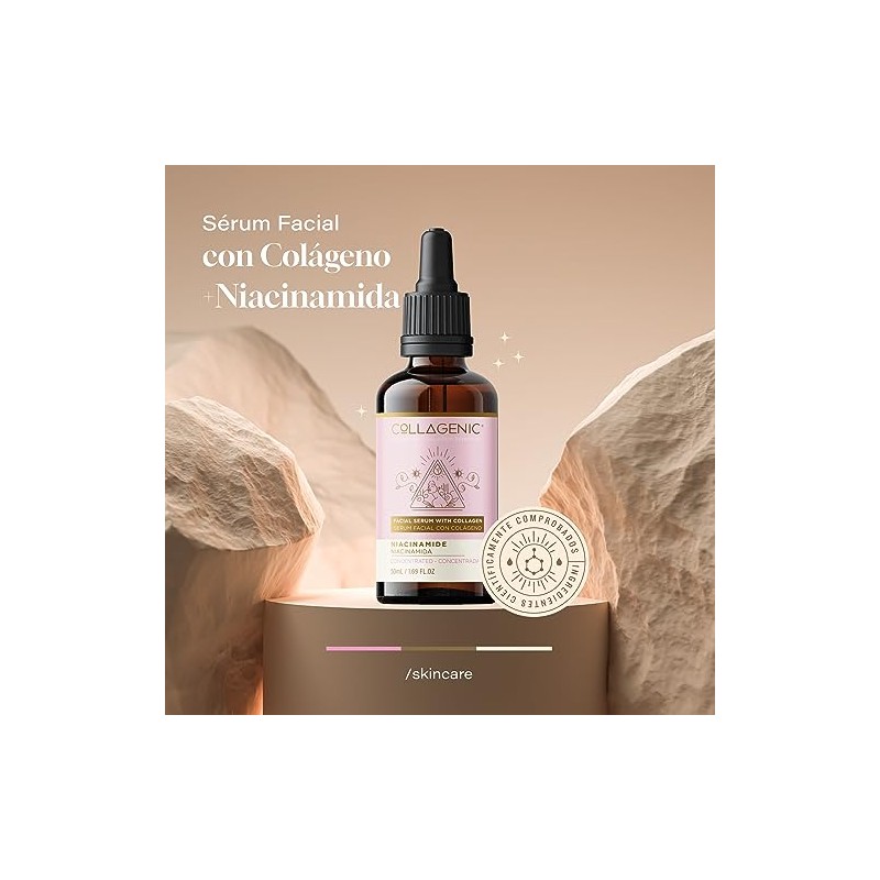 Collagenic | Serum Facial Antimanchas con 10% Niacinamida y Colágeno | Unifica el tono, Regula la Producción de Grasa, Reduce Poros Abiertos e Imperfecciones, Hidrata y Suaviza | Serum de Día y Noche| 60 ml