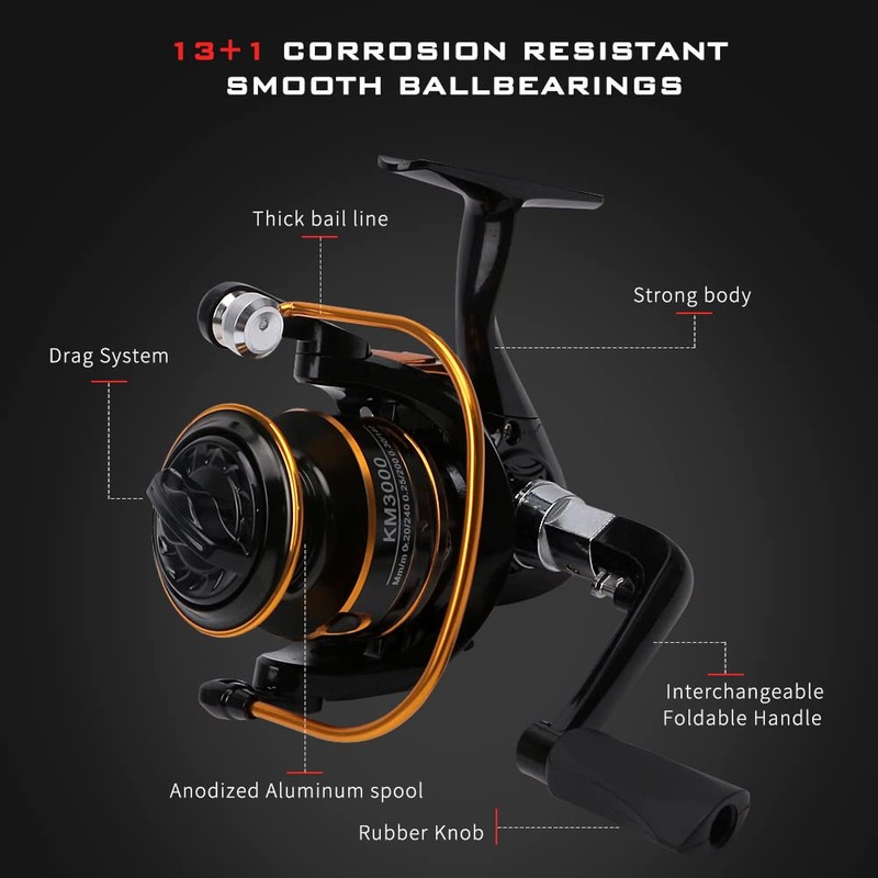 - High Quality Smooth Spinning Reel: Made of corrosion-resistant CNC machined aluminum with a solid base for all-weather use.