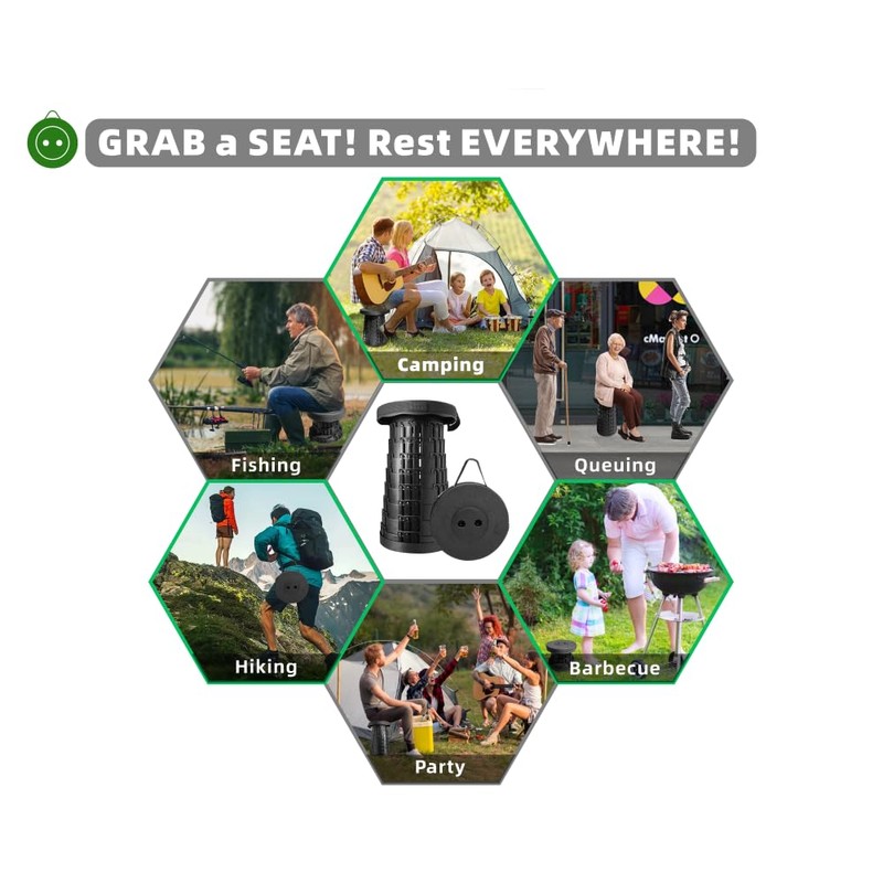 - 【EASY TO OPEN & USE】Rotate the collapsible stool in counter-clockwise to open and clockwise to close within seconds. Easy to take a seat whenever and wherever you are!