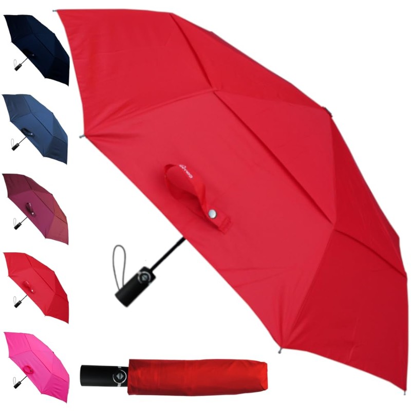 COLLAR AND CUFFS LONDON 80KPH Pocket Umbrella Automatic Small – Umbrella Ventilation Cover Foldable – Strong Windproof Reinforced with Fibreglass – Auto Up and Close – Travel, red, One size
