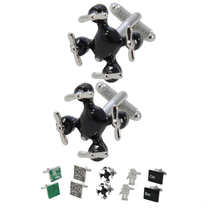 COLLAR AND CUFFS LONDON - High Quality Cufflinks with Gift Box - Drone - Stylish Brass - Flying Unmanned Plane - Black and Silver Colours, Metal
