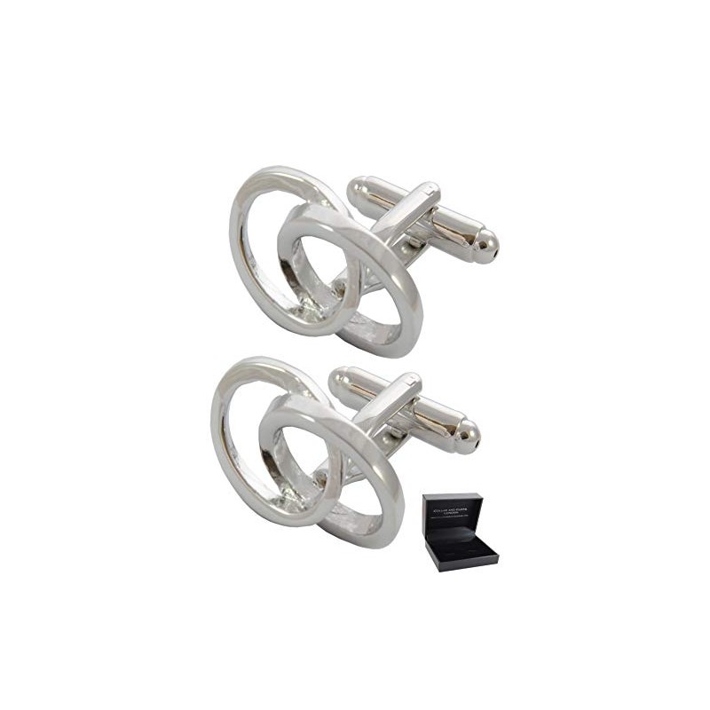 COLLAR AND CUFFS LONDON - PREMIUM Cufflinks with PRESENTATION GIFT BOX - Interlocking Ovals - Classic Infinity Design - Smooth Iconic Flow - Silver Colour