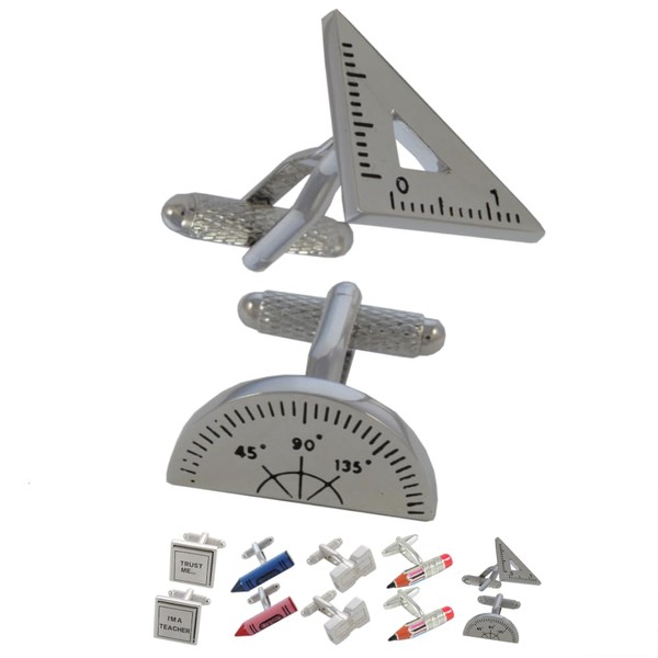 COLLAR AND CUFFS LONDON - Premium Cufflinks with Presentation Gift Box - Protractor and Set Square Maths Physics - Engineer Teacher - Silver Colour
