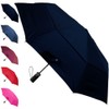 - 2) A STRONG CANOPY THAT'S BIG ENOUGH TO COVER YOU – This umbrella has a VENTED DOUBLE CANOPY designed to regulate pressure. Two overlapping canopy layers have vents which allow gusts of wind to pass through the umbrella reducing the risk of inversion. We only use HIGH QUALITY, WATERPROOF FABRICS that are strong, lightweight and flexible so they work in harmony with the frame. This umbrella has a 110cm canopy arc when open with a 98cm diameter; a generous size for a folding umbrella.