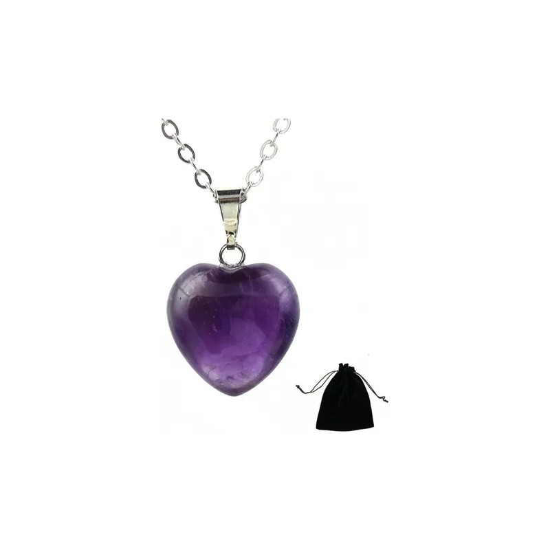 Collar Cadena Corazón Cuarzo Amatista Acero Yan Xi