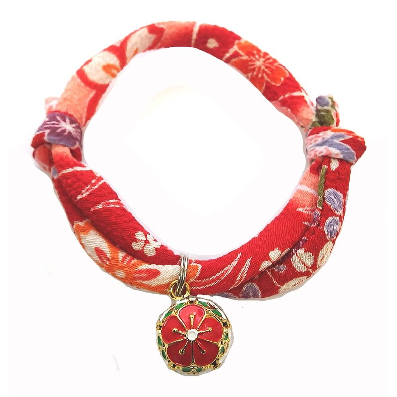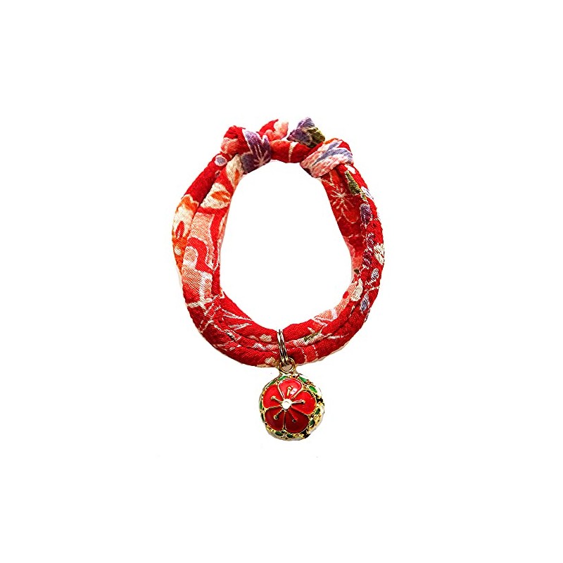 Collar: Cat Collar, Cat Bell Charm (Autumn Leaves, Plum Red), Accessory, Choker, Soft Fabric that does not burden the neck and coat (Adjustable Size) Asakusa, Kyoto, Crepe, Japanese Style, Modern,