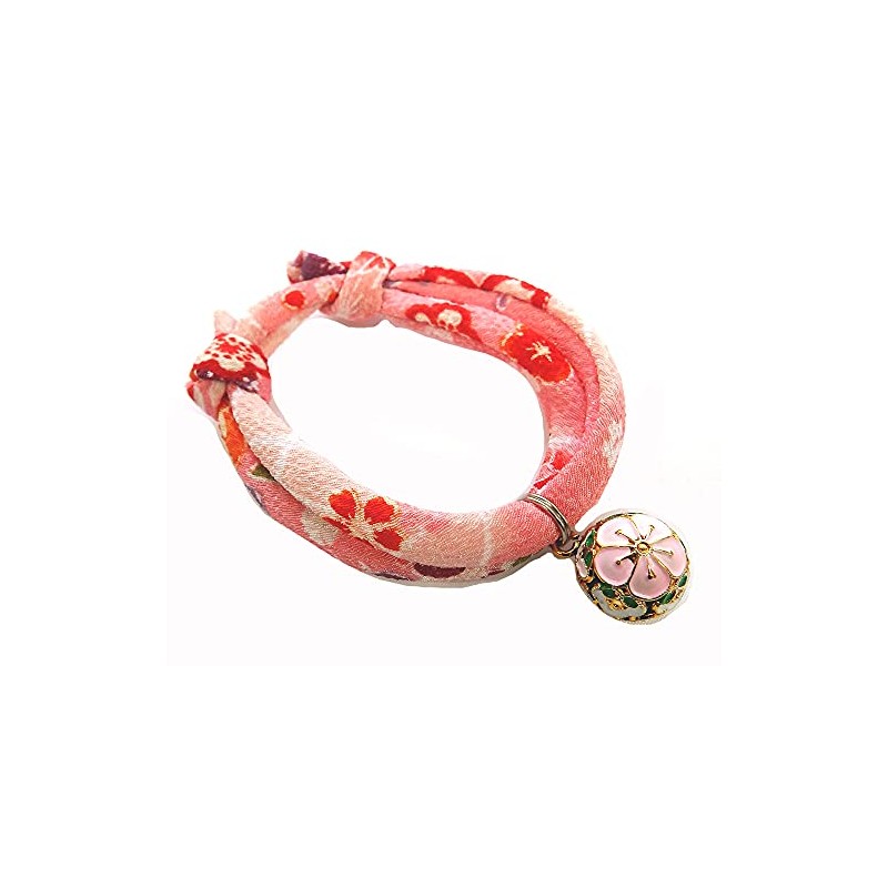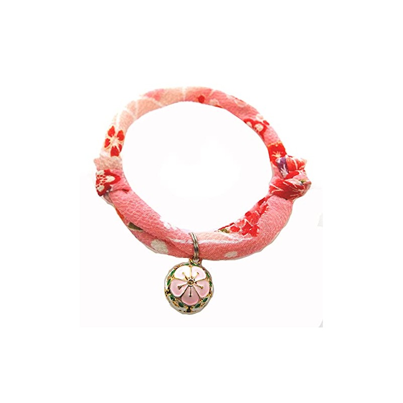 Collar: Cat Collar, Cat Bell Charm (Hydrangea, Plum Peach), Accessory, Choker, Soft Fabric that does not burden the neck and coat (Adjustable Size) Asakusa, Kyoto, Crepe, Japanese Style, Modern,