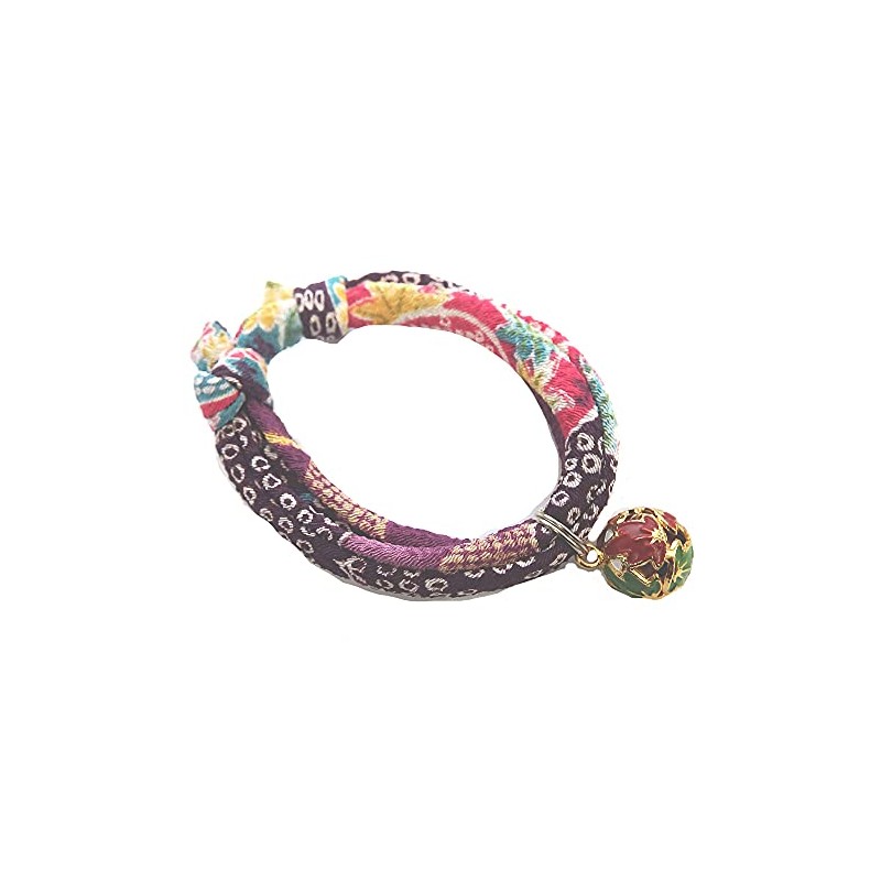 Collar: Cat Collar, Cat Bell Charm (Peony Purple, Autumn Leaves), Accessory, Choker, Soft Fabric That Does Not Burden Your Neck or Coat (Adjustable), Asakusa, Kyoto, Crepe, Japanese Style, Modern,