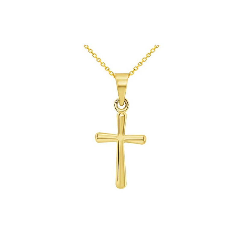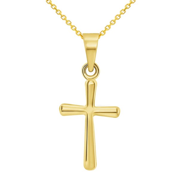 Collar con dije de cruz simple y de oro amarillo de 14 quilates, Oro, no aplica