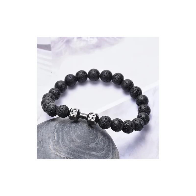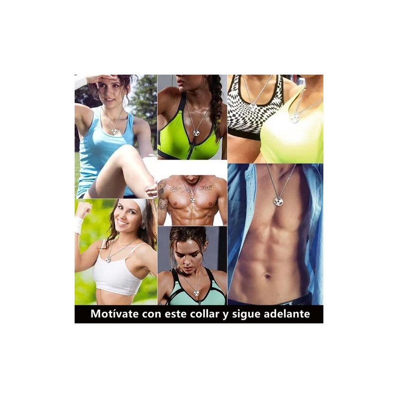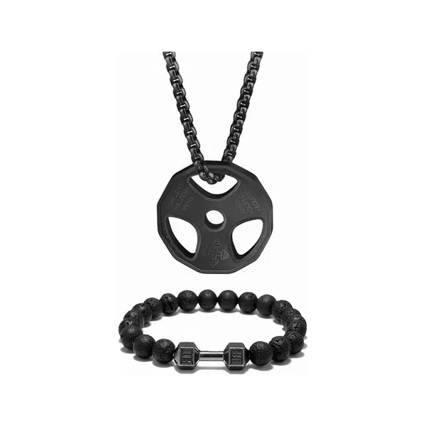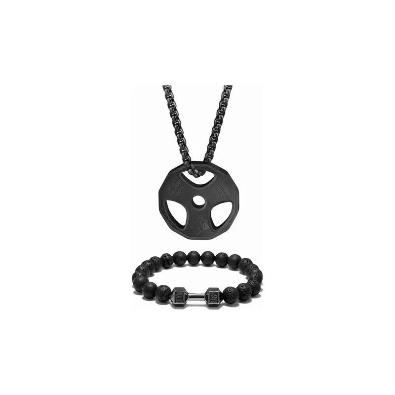 Collar Con Dije Disco Pesas Y Pulsera Mancuerna Acero Inoxidable Gym Fit Negro