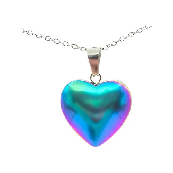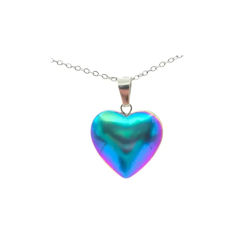 Collar Corazón Cuarzo Rosa Obsidiana Amatista Cadena Acero Tornasol