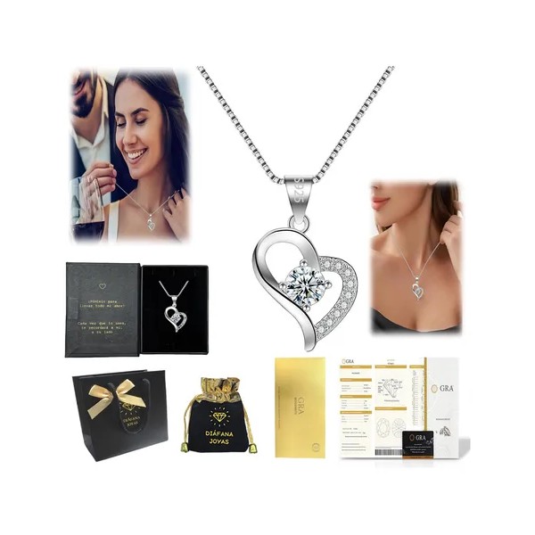 Collar Corazon Plata Regalo Pareja Novia Aniversario Mujer