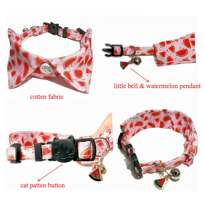 Collar for Cats Pets Cat Strap with Bell Breakaway Bow Collar Solid & Safe Buckle Pet Supplies Fruit Accessories Collar Handmade Sewing Detachable Pet Collar (Watermelon)