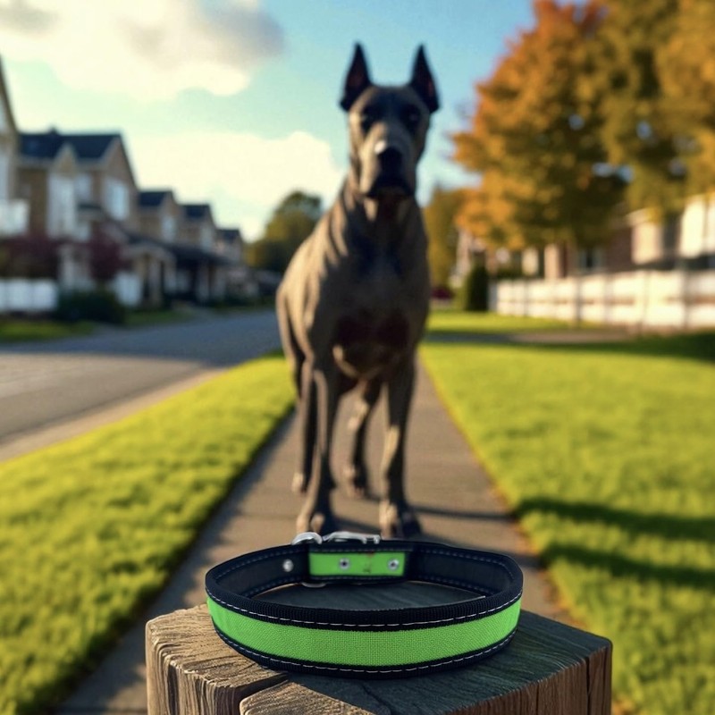 Collar para Perro De Naylon Resistente Entrenamiento Y Paseos Cómodos (Verde Fosfo, Extragrande)