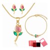Collar Tulipán Con Cristal Dijes Pulsera Aretes Joyería Lujo