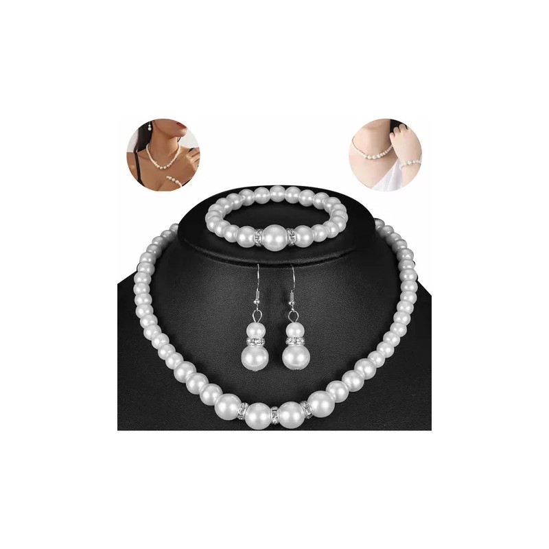 Collar Y Cadenas Dijes Joyeria Perlas Aretes Mujer Set De 4