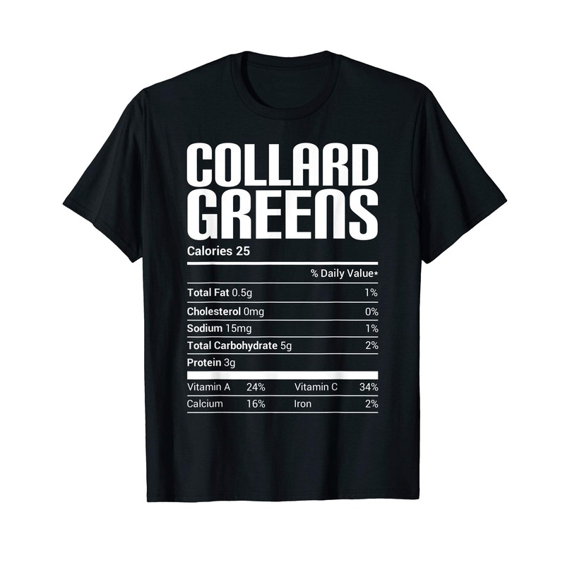 - great Halloween gift tee idea for those vegetarian food lovers or foodie guy who love collard greens recipe. perfect family matching lazy Food Nutrition Facts outfit to wear on Halloween day or Christmas day.