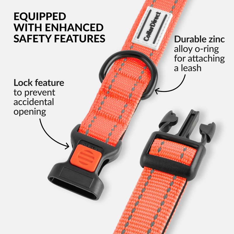 - [ Fits perfectly!] Each reflective collar can be combined with a CollarDirect leash made of the same material and colour. To purchase a matching dog collar and leash set, search for "CollarDirect Dog Leash" in Amazon's search bar. We have been making high quality collars for dogs since 2010 and attach great importance to the attention to detail and craftsmanship of the old world.