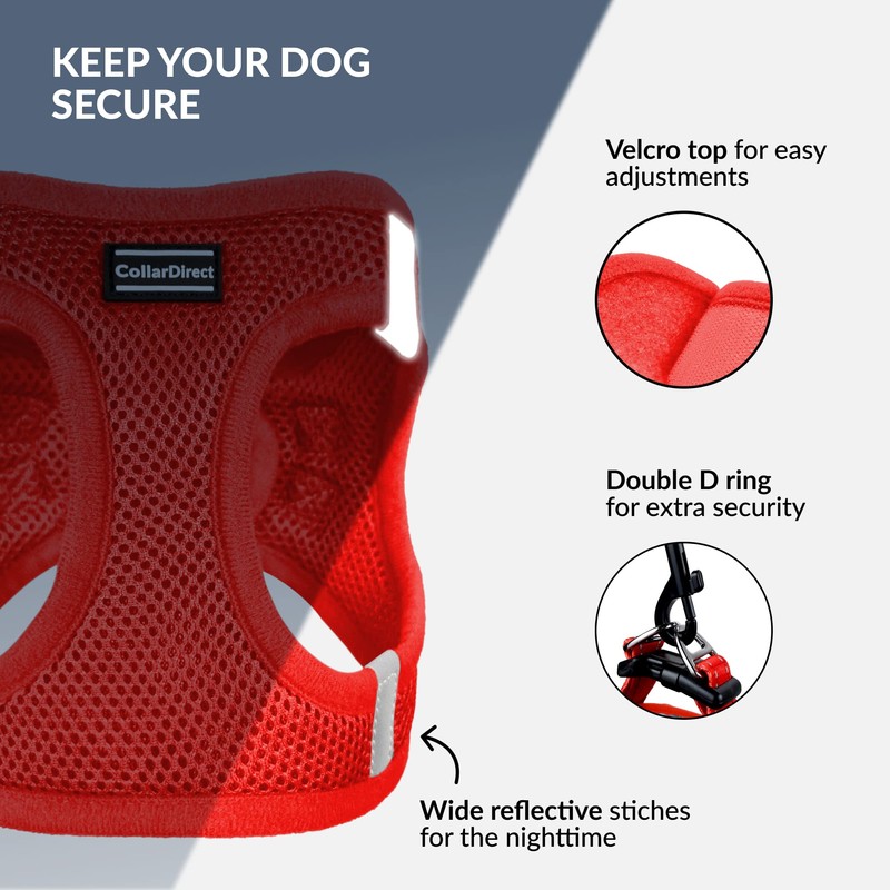 CollarDirect Step-in Reflective Dog Harness - Any Weather Air Mesh for Small and Medium Dogs Easy to Put On and Off (Size L, Light Red)