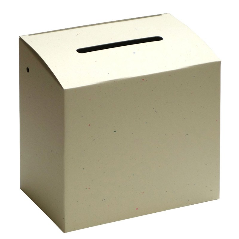 - Easy to assemble reclaimed paper fundraiser box