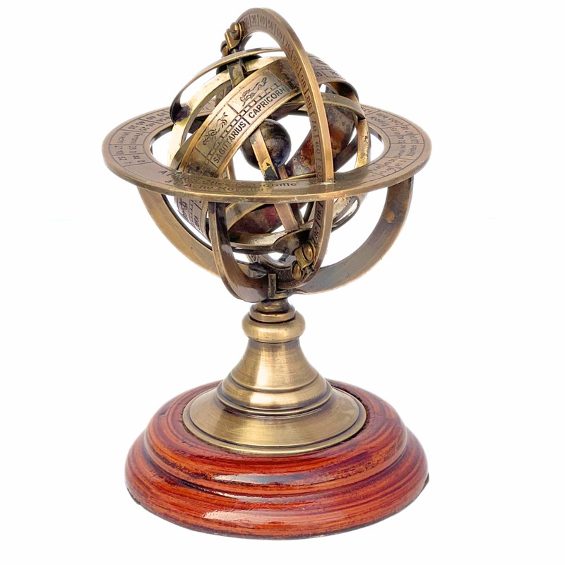 - Engraved brass tabletop globe is a must-have addition to any decor, Base is mounted on turned Solid High Grade Brass Armillary Sphere With Real Functionalities & Lovely Antique Brass Finish