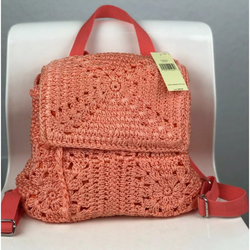 Collection 18 NWT Collection 18 Eighteen Peach Orange Knit Crochet Backpack Handbag Bag $69