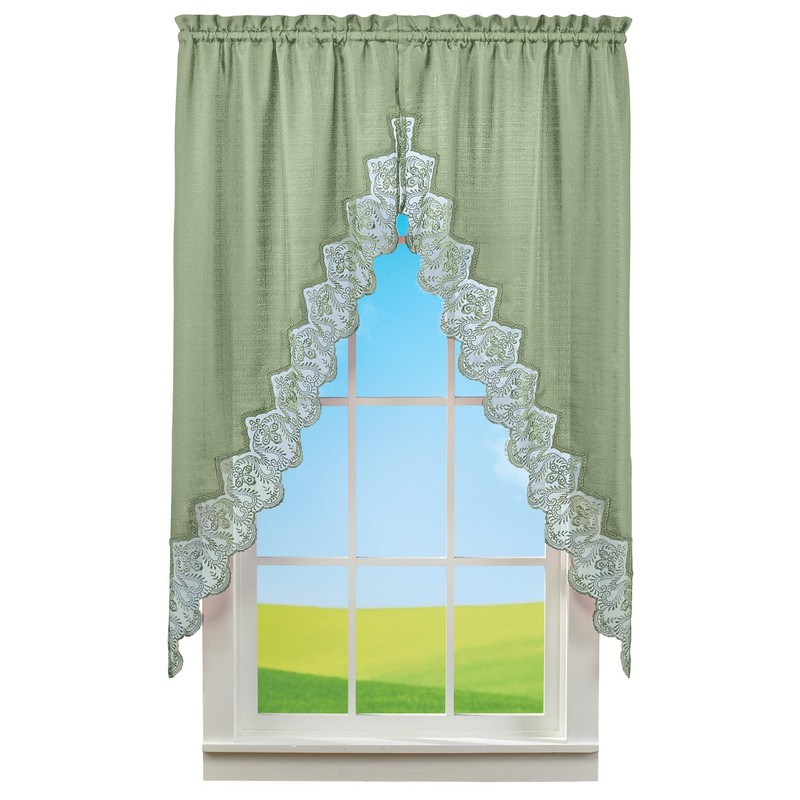 Collections Etc Elegant Lace Border Trim & Solid-Color Window Curtain Sage Swags