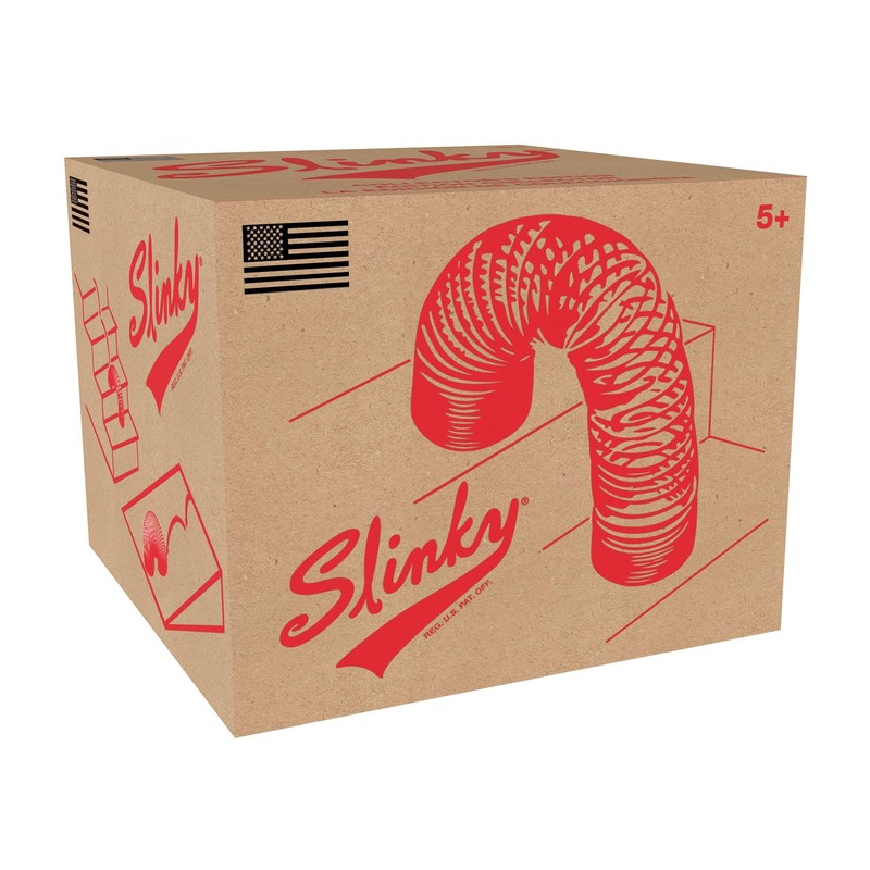 There’s only one Original Slinky Brand! Celebrate 75 years of wiggly-jiggly fun with Slinky! Generations of children and adults have loved playing with Slinky. This classic metal spring toy walks downstairs, alone or in pairs, and makes a slink-ity sound. First invented by mechanical engineer Richard James in 1943 during an experiment with tension coils. James accidentally dropped a spring on the floor and watched as it began to “walk.” Two years later, he introduced his walking spring toy in Gimbels Department Store during Christmas, and the Slinky immediately sold out. Since its debut, over 300 million Slinkys have been sold worldwide. In 2000, this classic toy was inducted into the National Toy Hall of Fame. This collector’s toy is packaged in a cardboard box that was inspired by the artwork used on the packaging for the first Slinky in 1945. The spring is even a black metal to reproduce the look of the original Slinky. Made 75 years ago, Slinky continues to be a favorite toy of children and adults all over the world. Slinky is fun for a girl or a boy and makes an ideal gift, stocking stuffer, prize, or present. Everyone loves a Slinky! Ages 5+