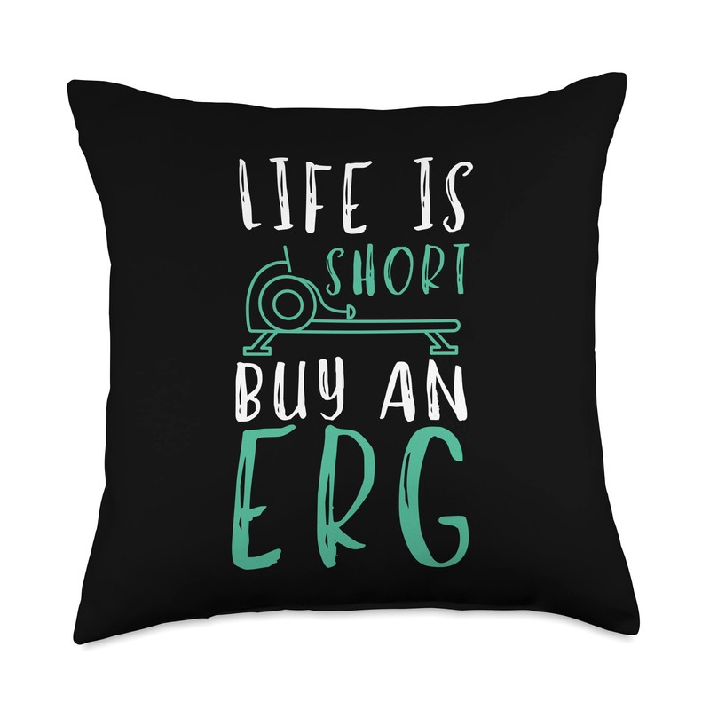 College Rowing And Sculling Cardio Gym Apparel Erg Ergometer Exercise Machine Rowing Workout Throw Pillow, 18x18, Multicolor